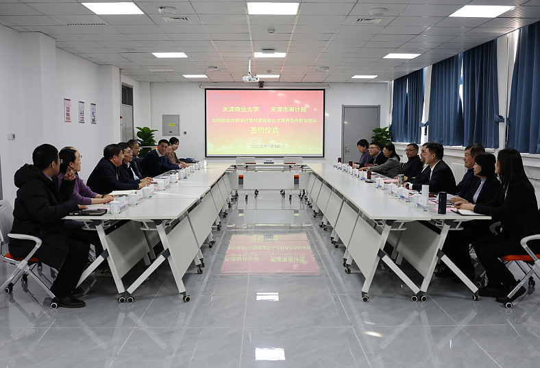 1月7日下午,天津市审计局党组书记、局长张健一行来校就双方深化“局校共建”,开展战略合作事宜进行交流。校党委书记张亚会见张健一行。校党委副书记崔强主持座谈会。副校长齐恩平和审计局副局长王维章分别代表学校和审计局签署了全面战略合作协议。